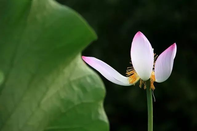 虽不如六月末的夏荷那般葳蕤,但烟波浩渺中,几支枯瘦的荷枝遗世独立,大半花片被风吹落,露出藤黄细长的花蕊,似顷刻间就要随风而逝。