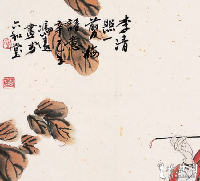款识:李清照一剪梅诗意,辛巳年冯远画于六和堂。