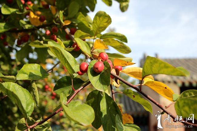 它不是菊花,却与菊花相伴;金黄的叶子,红红的果实,告诉人们秋天的到来。还有远处隐隐约约的古建房顶的神兽,都在挽留着菊花的秋的芳姿。