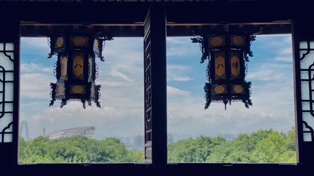八咏楼虽然不再是至高点,但风景依旧美丽。站在二层阁楼上,八咏公园尽收眼底,天空依旧如千年前的澄净,远处千峰如水墨点就,双溪风景尚好。乘坐婺州游船,随着微波荡漾,享大都市的极尽浪漫,观万家灯火的流光溢彩。