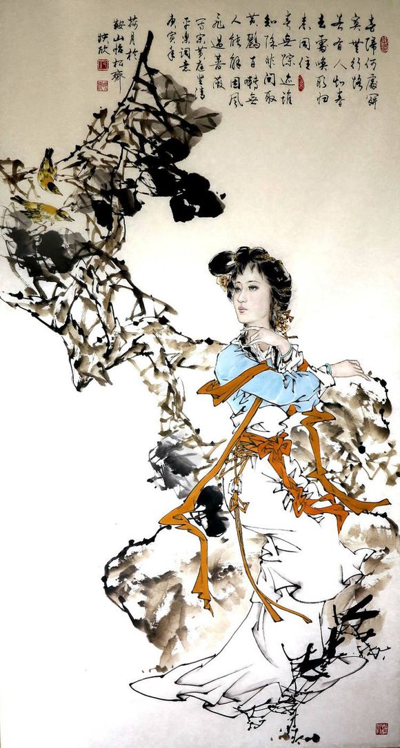 李清照受到南宋以来广大读者的尊敬和喜爱,更是把李清照作为心中的女神所敬仰。每一位喜爱李清照的读者,不但认为李清照是当之无愧的千古第一才女,也一定是一位气质非凡的美女。只可惜年代久远,历史没有留下李清照的画像。但这丝毫没有影响李清照的粉丝们,充分的想象力。每个人心目中的有一个不同想象的李清照,但相同的是,她们都很美!自清朝以来,就有很多画家和美术工作者、美术爱好者,包括今天的摄影、影视人员,依照李清照的词意和充满激情的想象里。为我们勾勒出一幅幅鲜活的李清照的俊美形象。