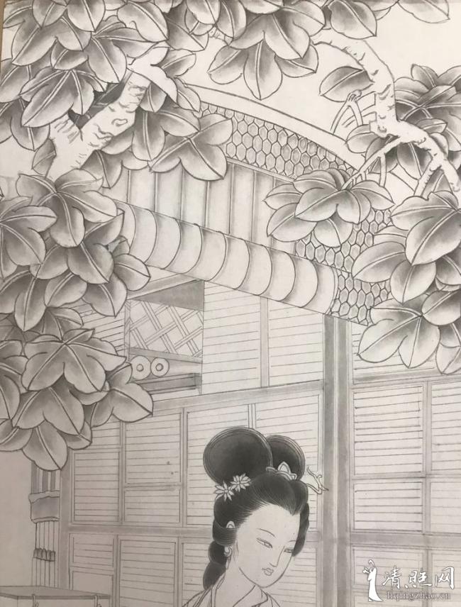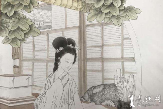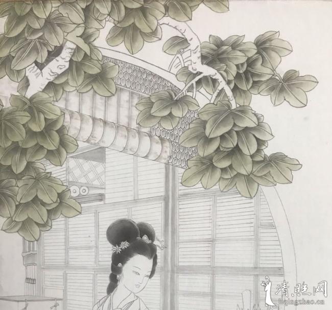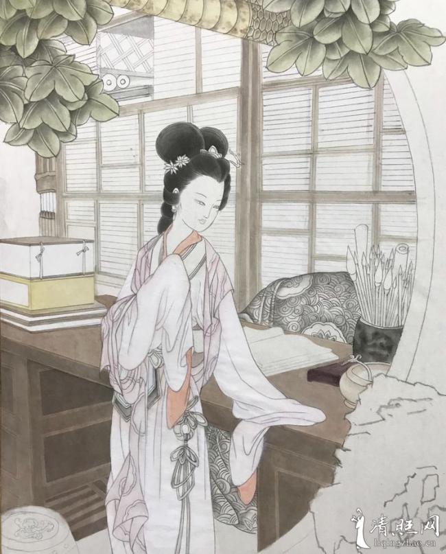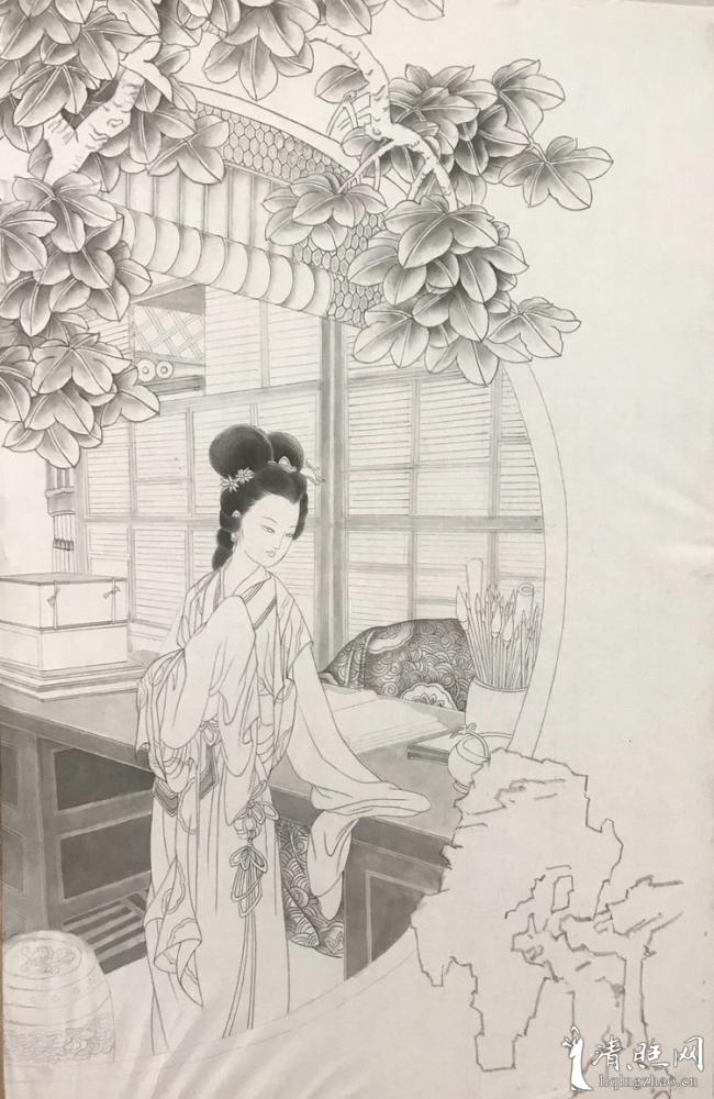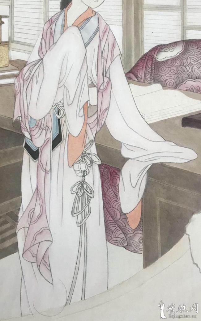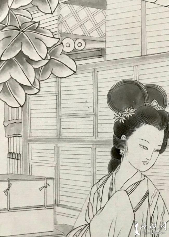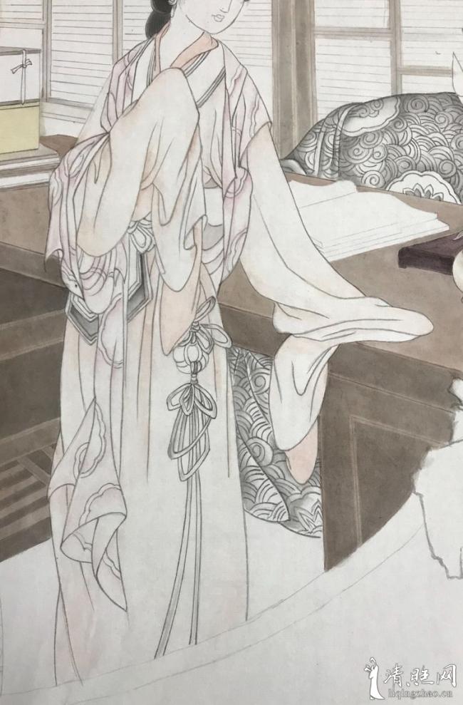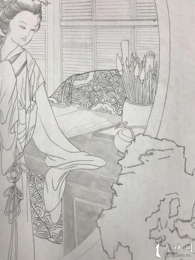 脸部、衣裙、唇部淡墨勾线又细又淡。头饰线不宜太浅。