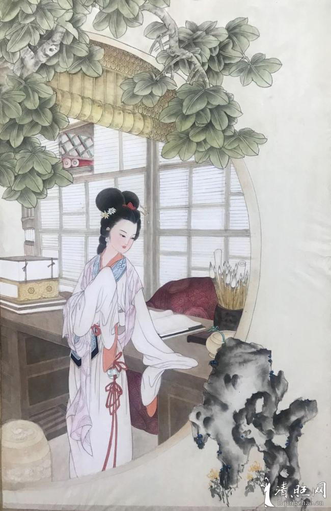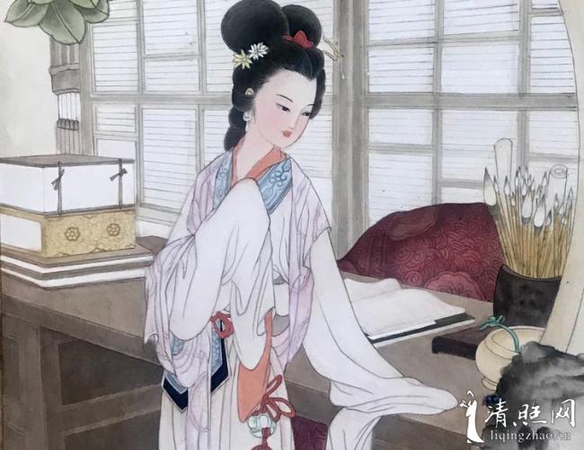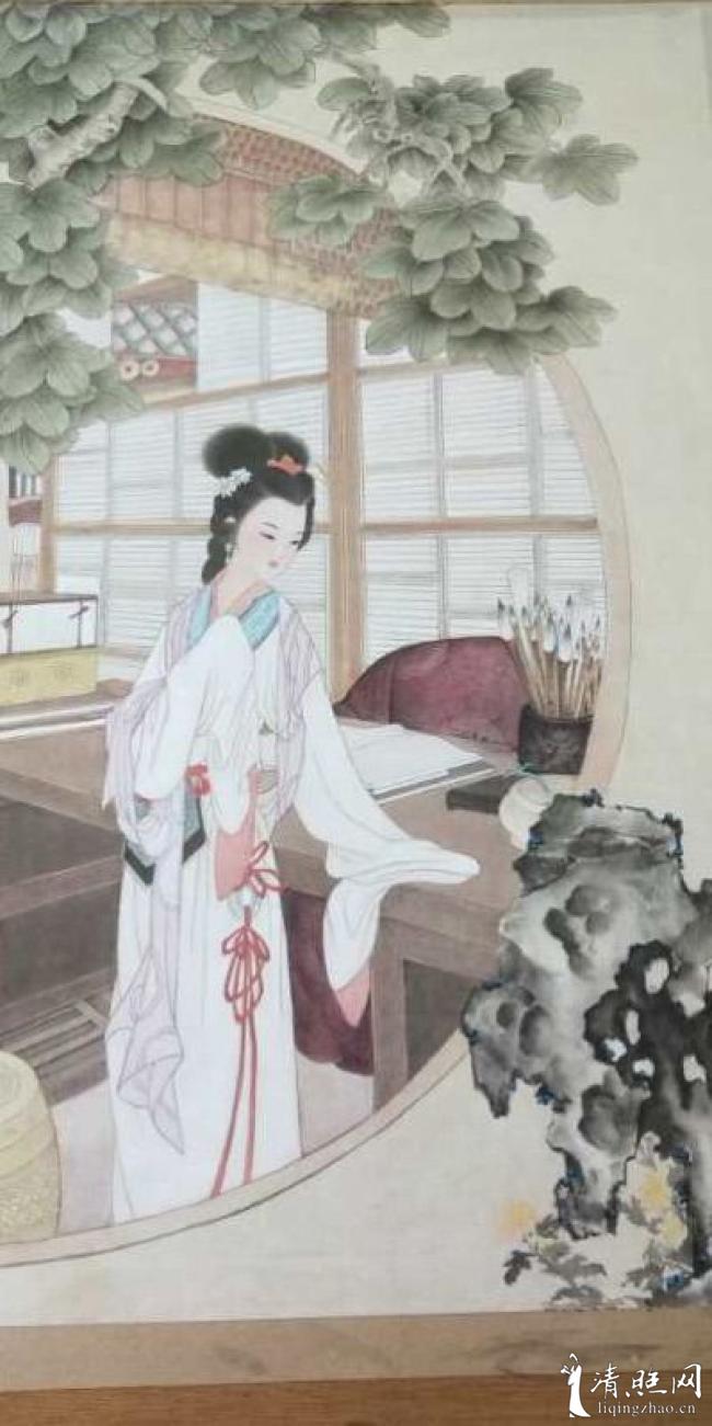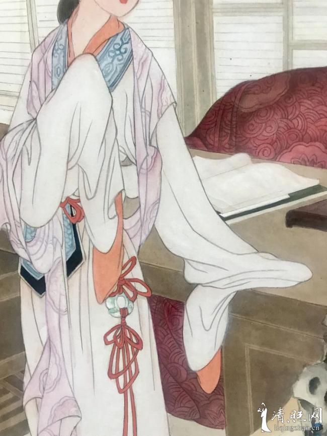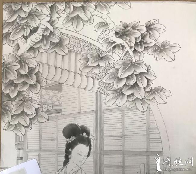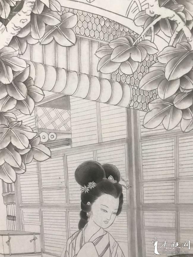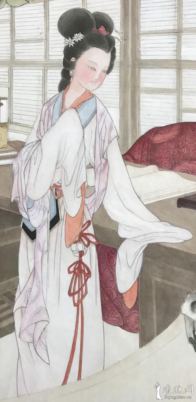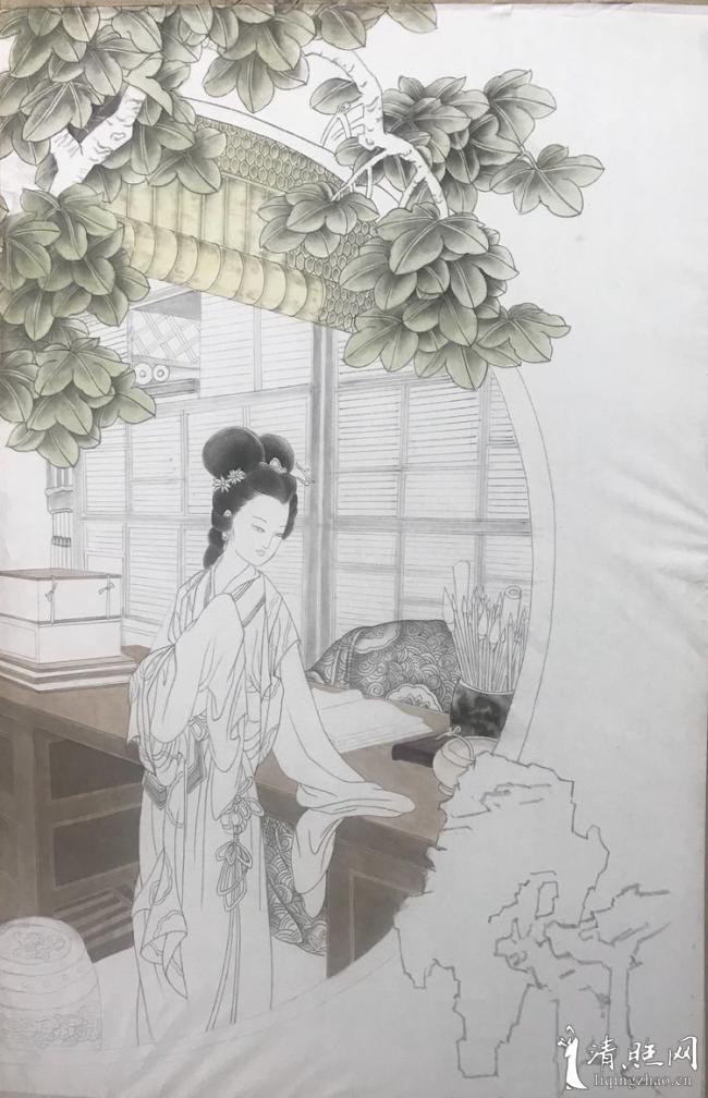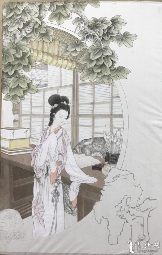 脸部、衣裙、唇部淡墨勾线又细又淡。头饰线不宜太浅。
