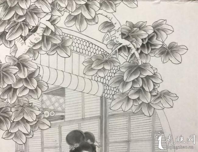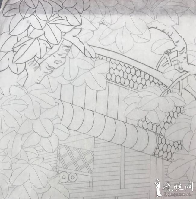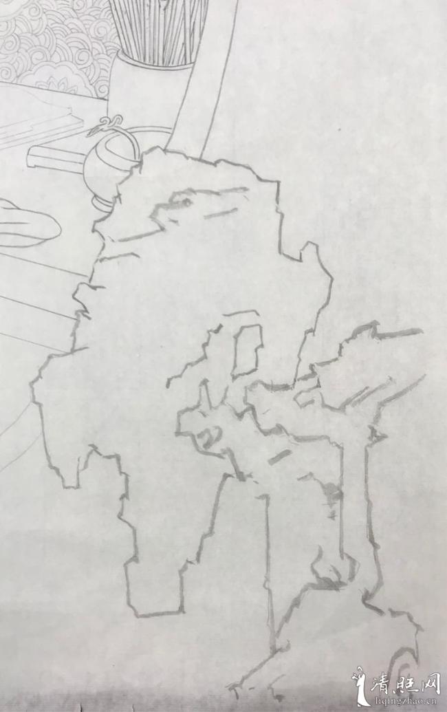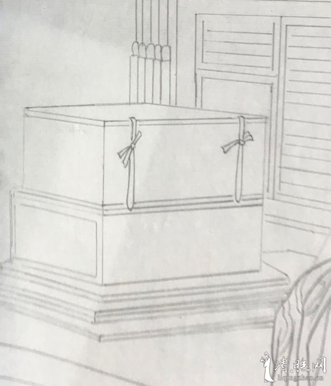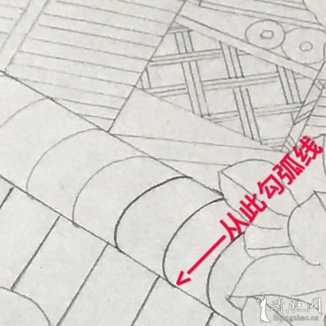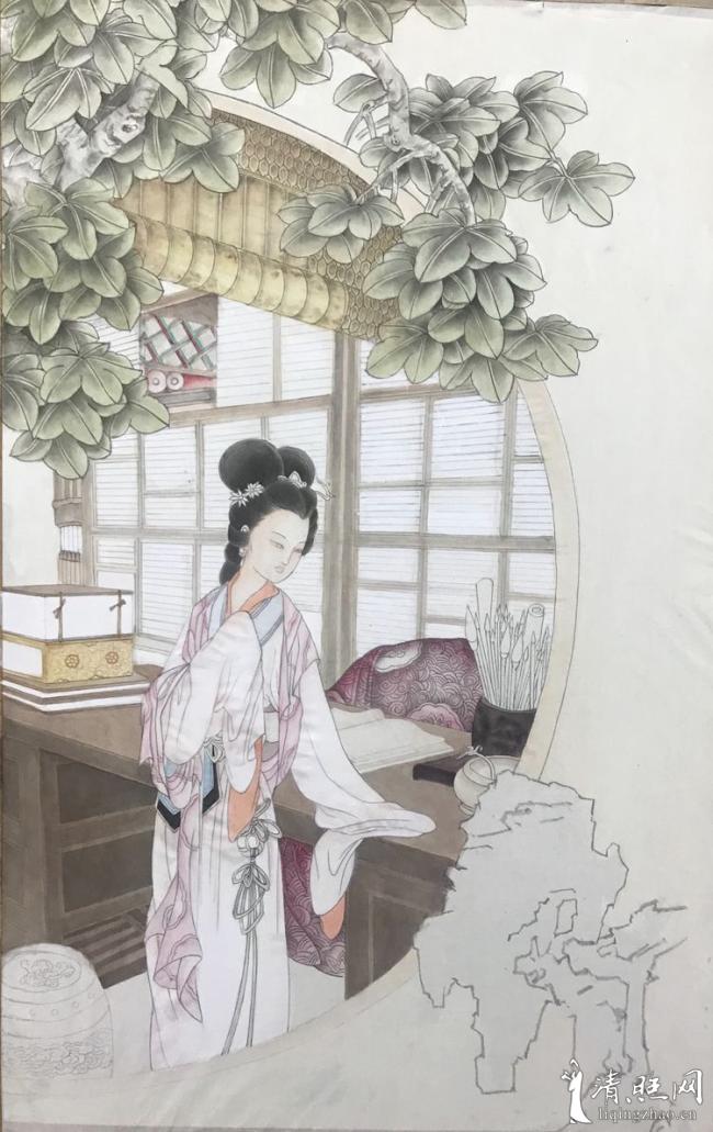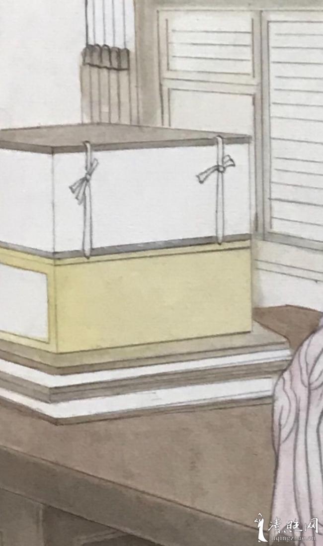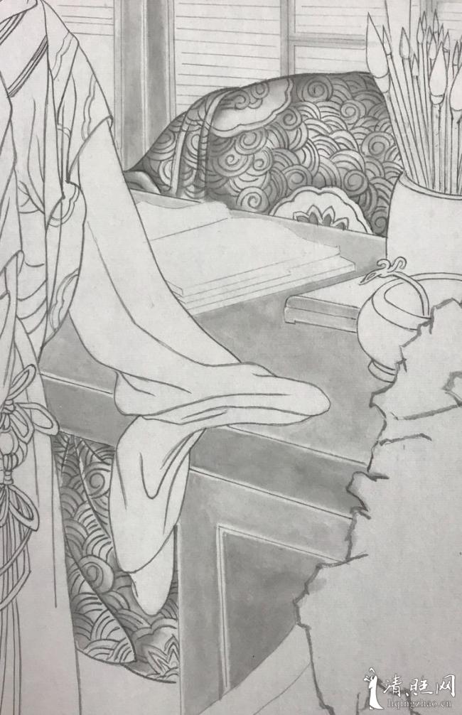 锦书盒扣要勾出它上下连接细绳纽鼓线条来,不要勾僵了。