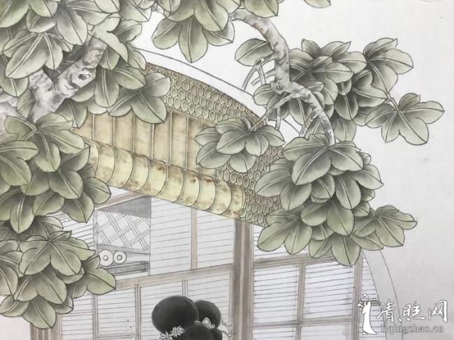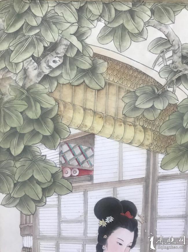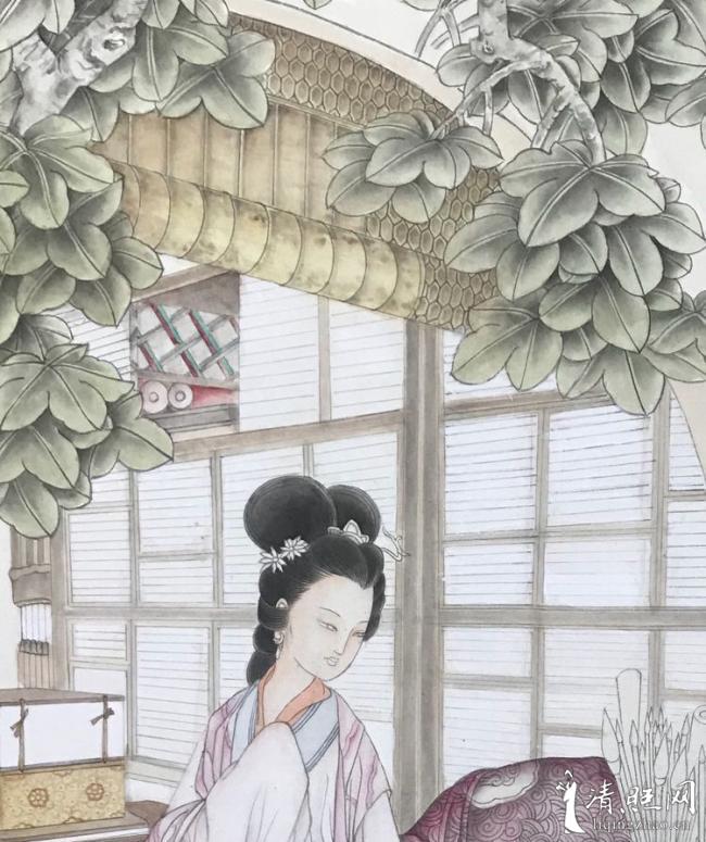 淡墨对珠帘内、卷帘和垂帘交接处的分染和留水线分染。