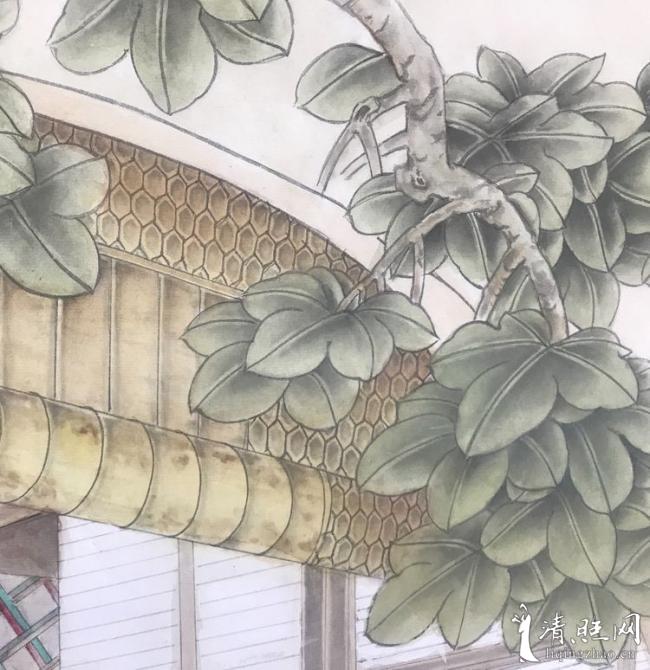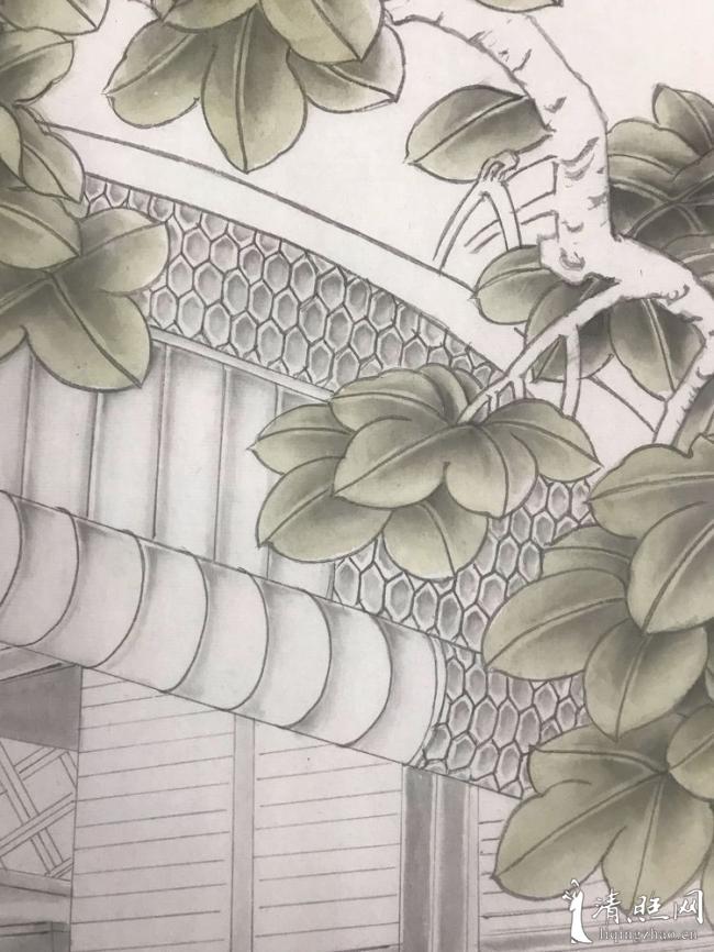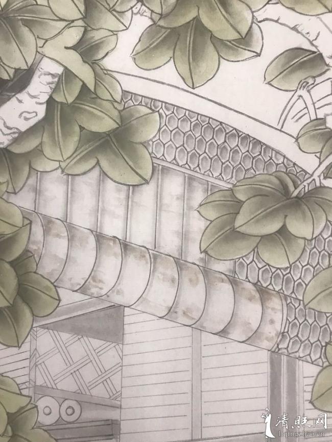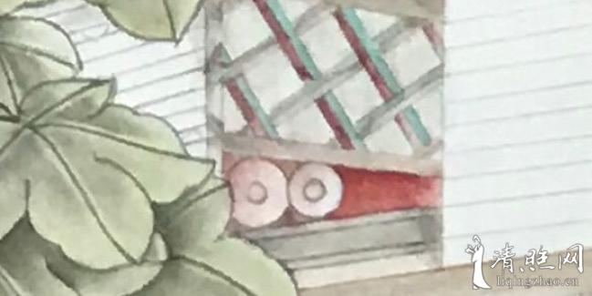月洞窗檐:以上色个别部位分染明暗,但不一律。