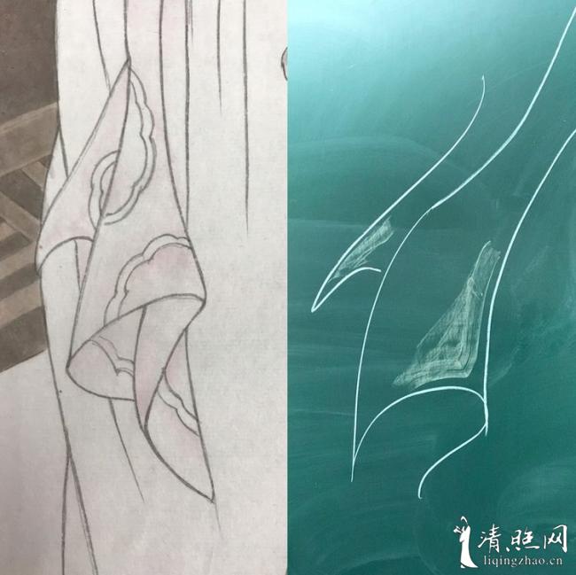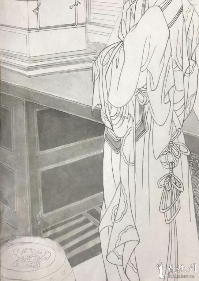 勾衣裙线条时,须理顺线条上下左右关系,看清楚下笔,不致勾错线。