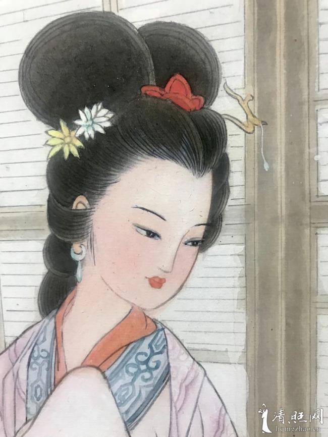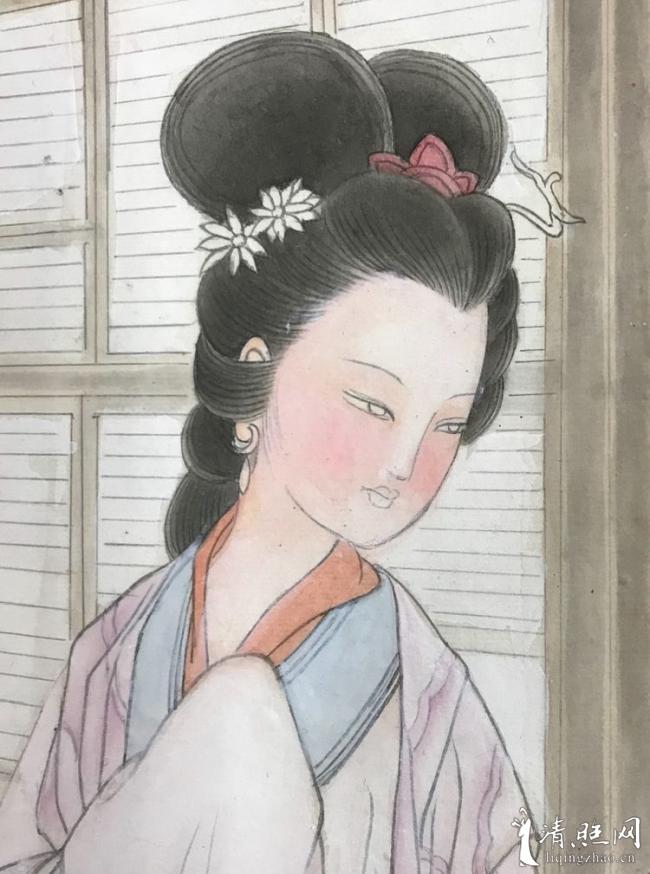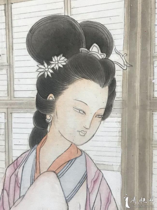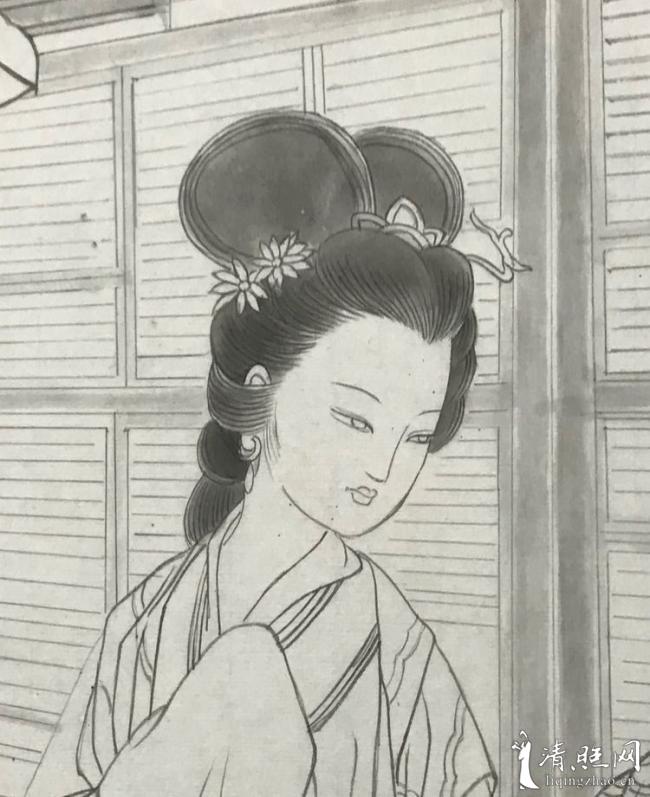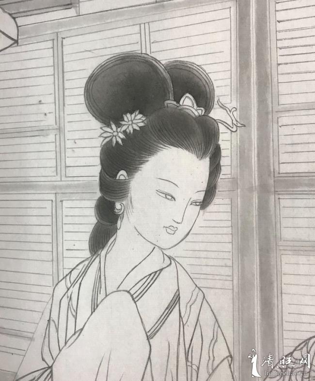 发髻。1)淡墨平涂一遍。2)中墨分染发髻,墨色外虚内实,切忌染炭。