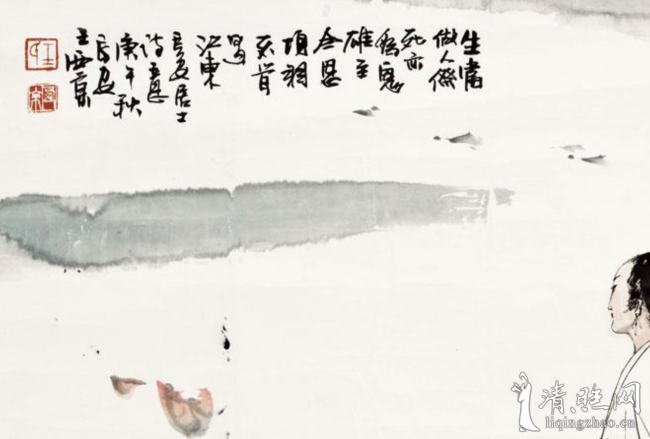 王西京1990年作:李清照《夏日绝句·生当作人杰》词意图 镜片 纸本设色 66.5×68cm