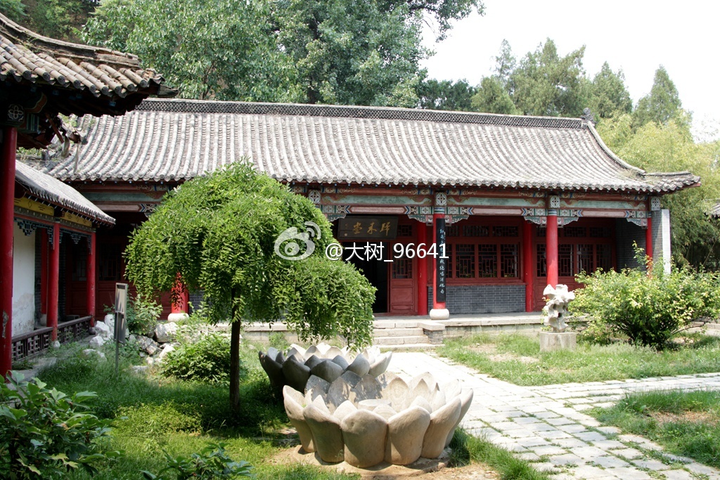 庭院的西侧和南面走廊是碑刻“祠廊”。小院花草掩映,绿树成荫,背靠是一座土山。