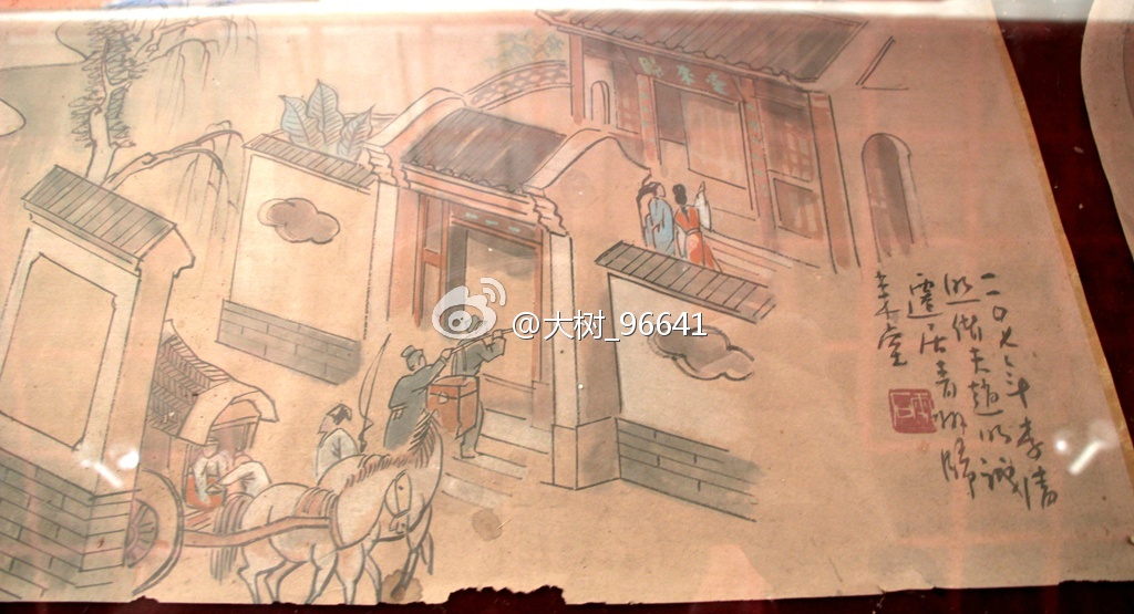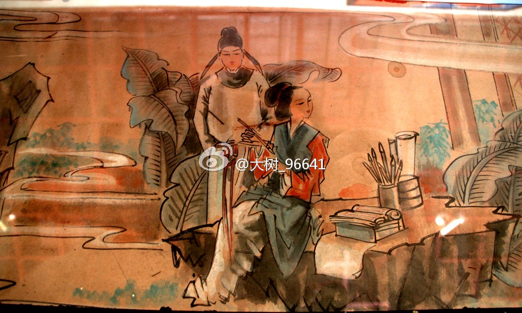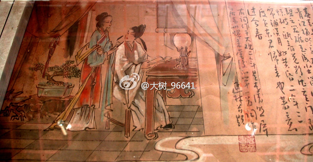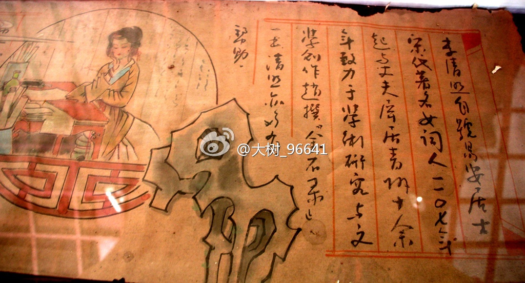 这是一幅长卷,画家用心给我们还原李清照和赵明诚当年在“归来堂”的重要生活片段。因为长卷在玻璃框之下,拍照不宜,可能不太完整。易安居,或许和此地无关,但李清照此后一直以易安居士自称,可见她多么喜爱她的易安居。包括《词论》在内的多少不朽名篇,都是在这不大的“易安居”内耀然出世。