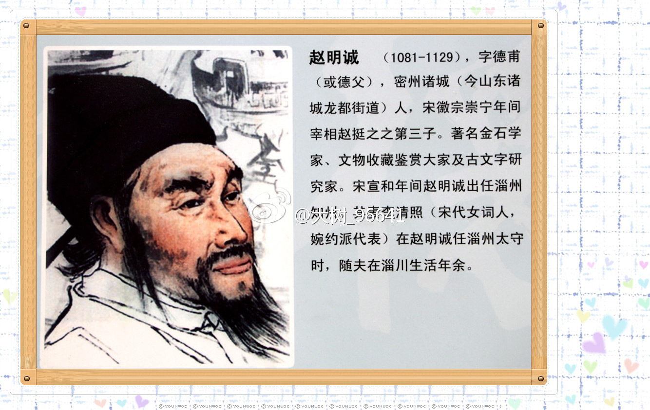 很是遗憾,只是在这幅“般阳历史文化名人”的照片中,看到了有关赵明诚的简介,其中提到了词人李清照。