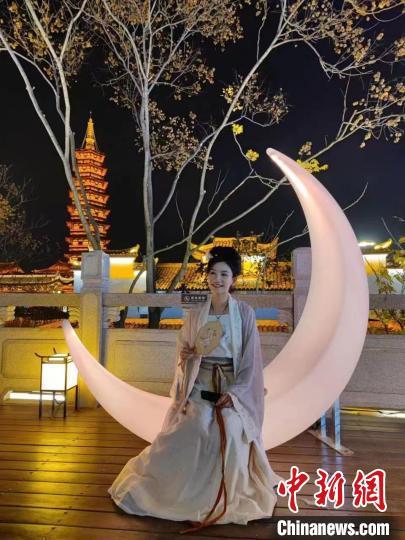 年轻人打卡金华的风月无边月亮灯 金华市委宣传部 供图