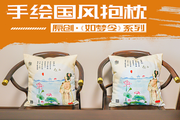 李清照 如梦令棉麻抱枕 双面手绘