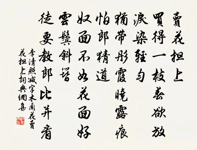 他也不能说他的新婚妻子比不上花朵俏丽,可是他也不能说她比花朵还漂亮。就算那时候的李清照再漂亮,也不太可能和花朵比美好的。因而这个问题原本便是难解的。